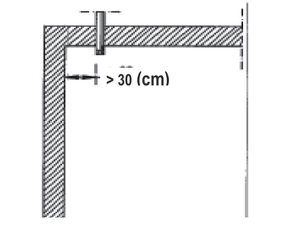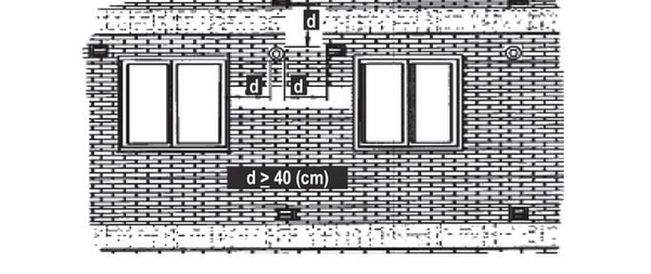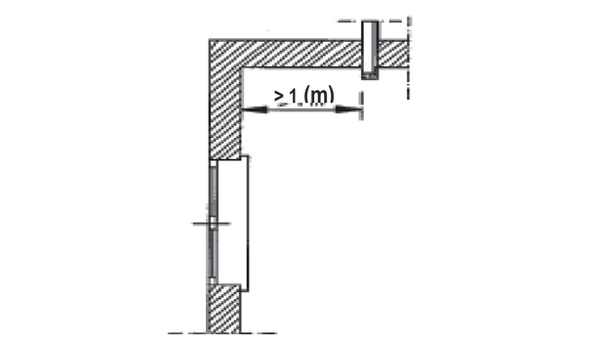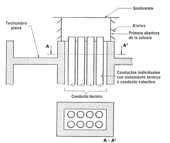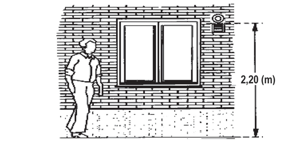 Artefacto conectado con salida horizontal por medio de sus conductos, a un terminal instalado horizontalmente a la pared, con salida de gases y entrada del aire directa del exterior. Los orificios de los conductos podrán ser concéntricos o estar suficientemente cerca para soportar condiciones de viento similares.