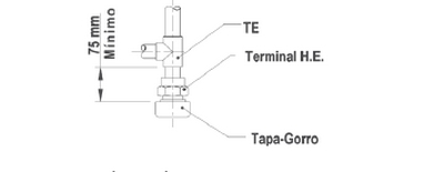 Tramo de tubería derivado de la red interior de gas dispuesto para la conexión de un artefacto a gas, por medio de una unión, entre otras, roscada.