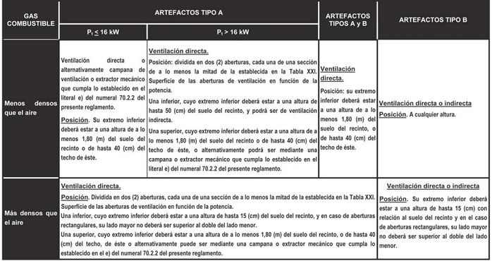 Estipula los requisitos técnicos y de seguridad aplicables a la instalación, operación y mantenimiento de artefactos a gas, incluyendo, entre otros aspectos lo relativo a los recintos en donde los mismos se encuentren ubicados, volúmenes y ventilaciones.