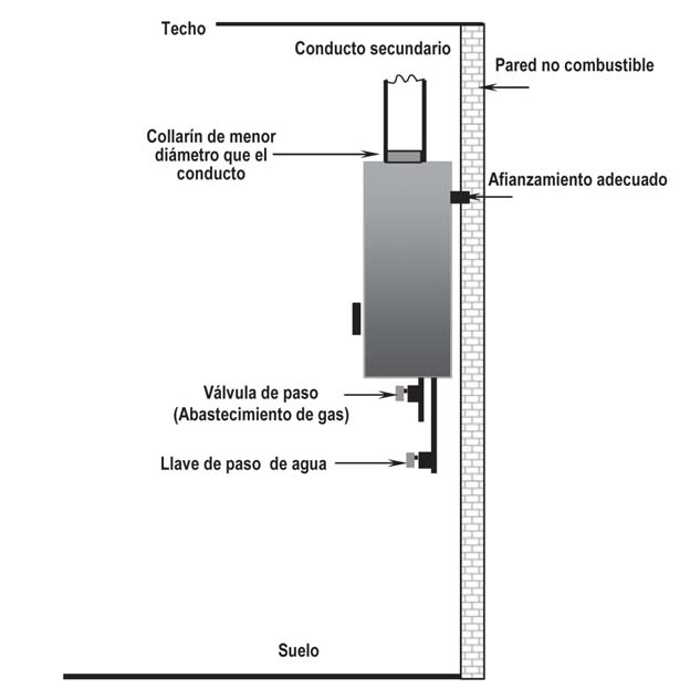 b) Artefacto a Gas Estacionario. Artefacto a gas fijo que, normalmente, no tiene contacto directo con los muebles o paredes próximas.