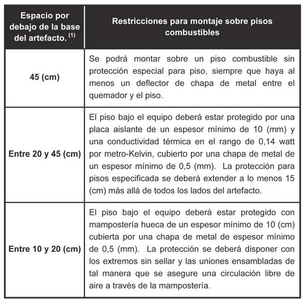 c) Los materiales usados en su fabricación deberán ser no combustible, aptos para operar a la temperatura de los gases de salida del artefacto, con un mínimo de 300 (ºC), además de resistentes a los agentes corrosivos presentes en los gases producto de la combustión.
