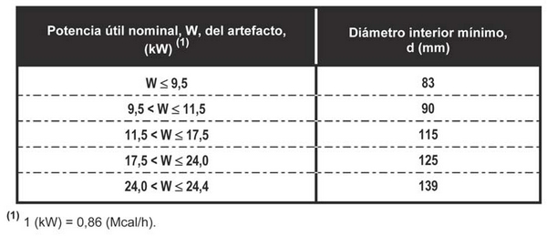 a) Independientemente del sistema de evacuación seleccionado, el conducto o chimenea deberá cumplir con las características y condiciones indicadas en las instrucciones del fabricante, entre otras, el diámetro o sección y su altura, o en las normas oficiales chilenas y ante la falta total o parcial de éstas, se deberá aplicar lo dispuesto en el Capítulo X - De la Evacuación de Gases Producto de la Combustión de Instalaciones de Gas, del presente reglamento.