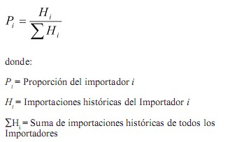 3.4 El volumen máximo de importación asignado por importador, será determinado multiplicando el total del volumen máximo de importación del grupo de sustancias correspondiente a los importadores históricos, por la proporción resultante de cada importador (Pi), por grupo de sustancias.