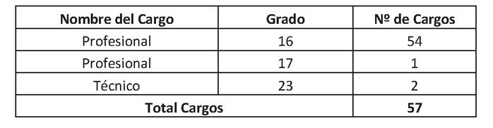 . Cargos de profesionales a proveer, de