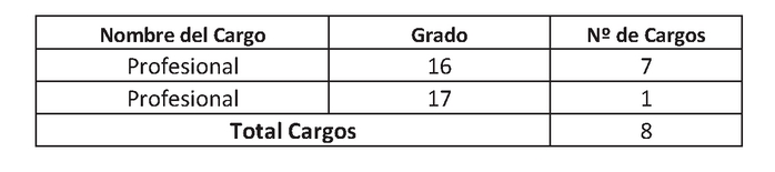 . Cargos de profesionales a proveer, de acuerdo
