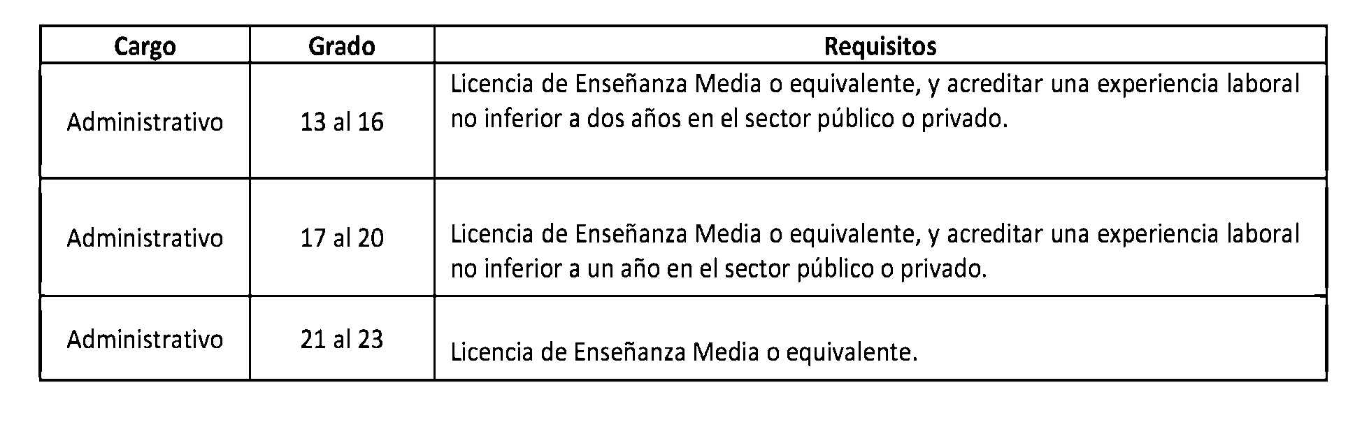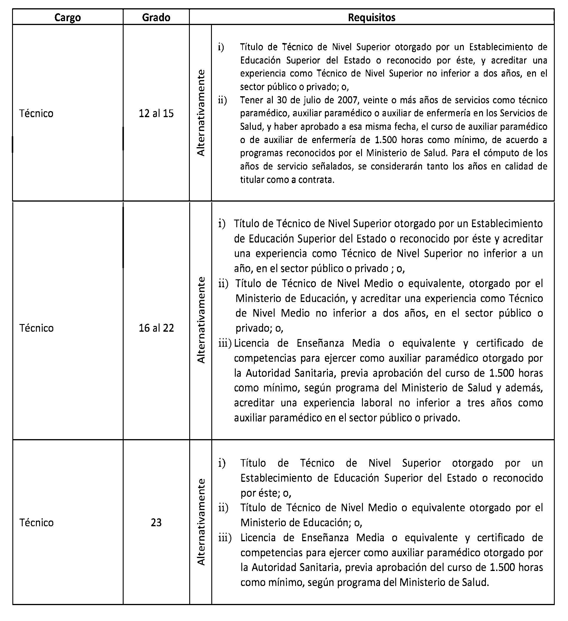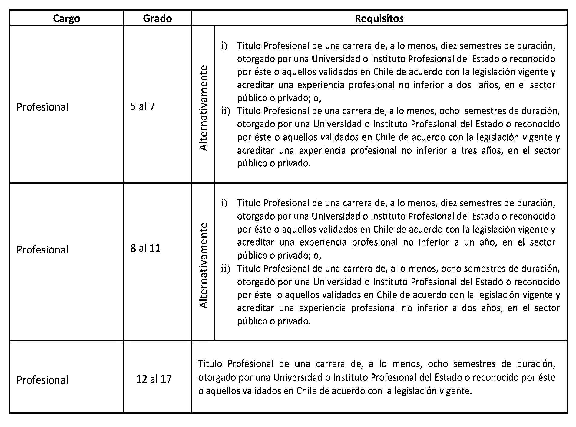 Artículo 2°. Establécense los siguientes requisitos para el ingreso y promoción en las plantas y cargos que se indican a continuación: