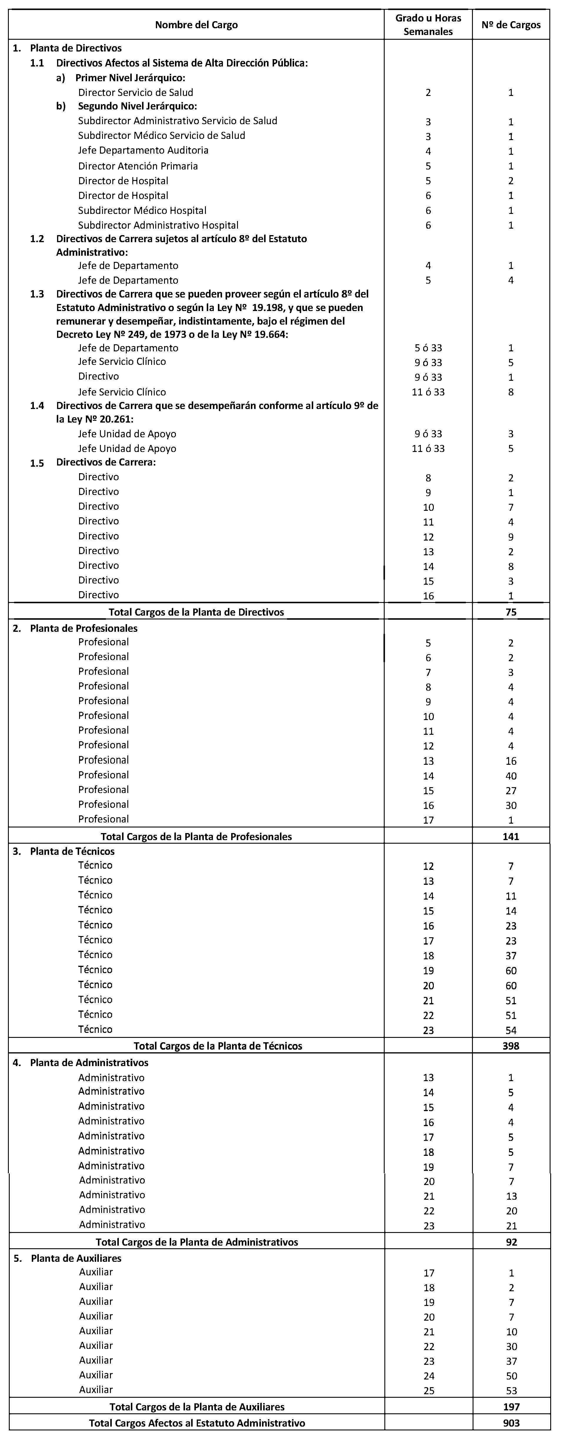 FIJA PLANTA DE PERSONAL DEL SERVICIO DE SALUD ARAUCANÍA NORTE