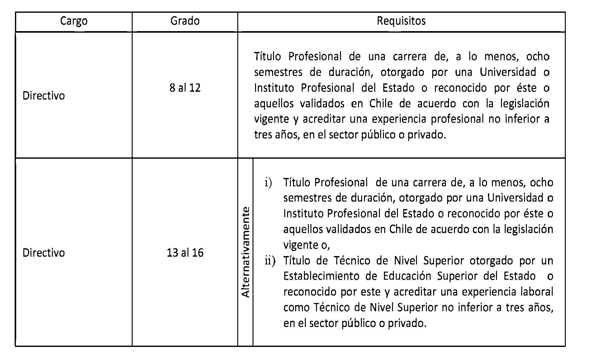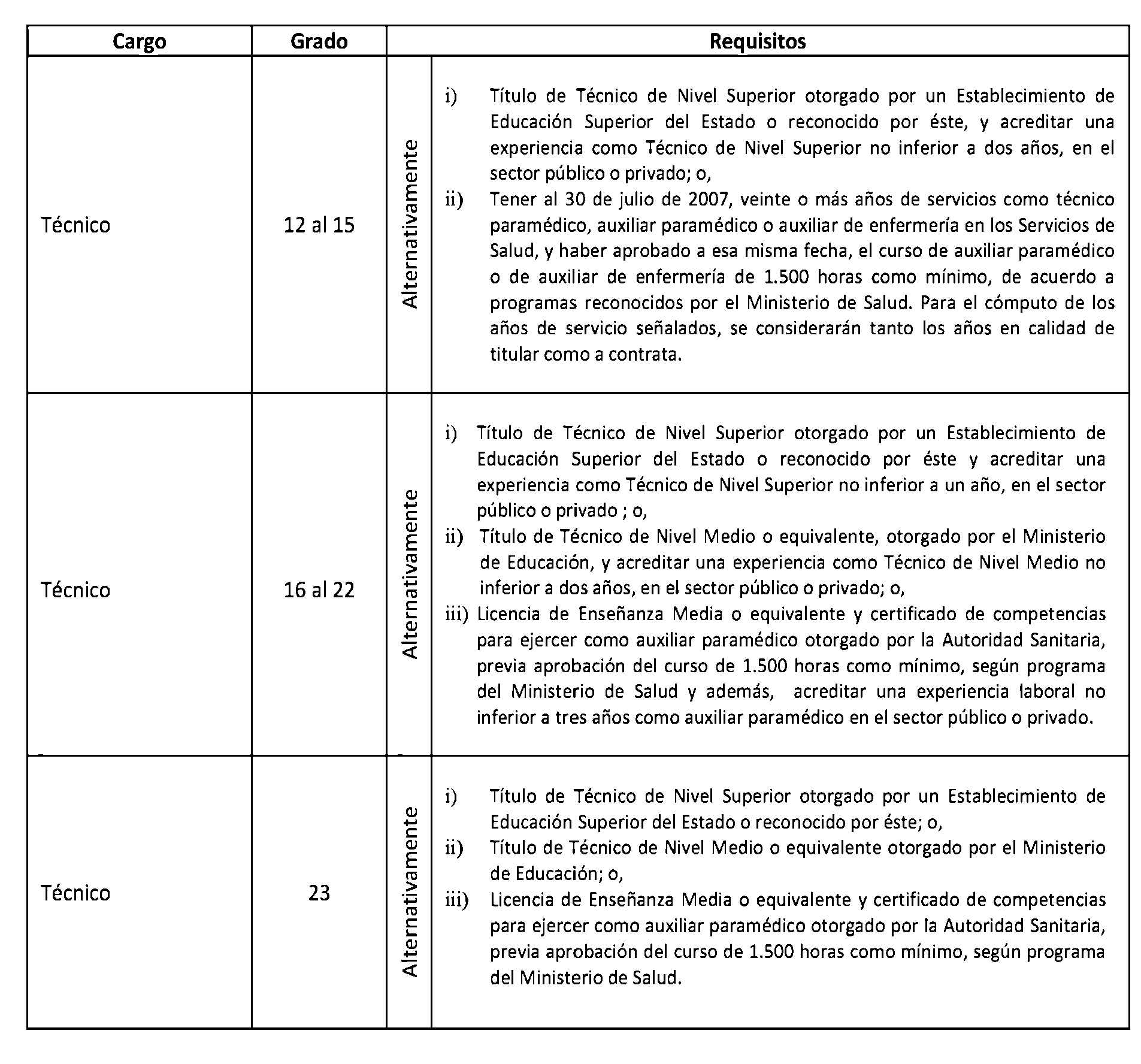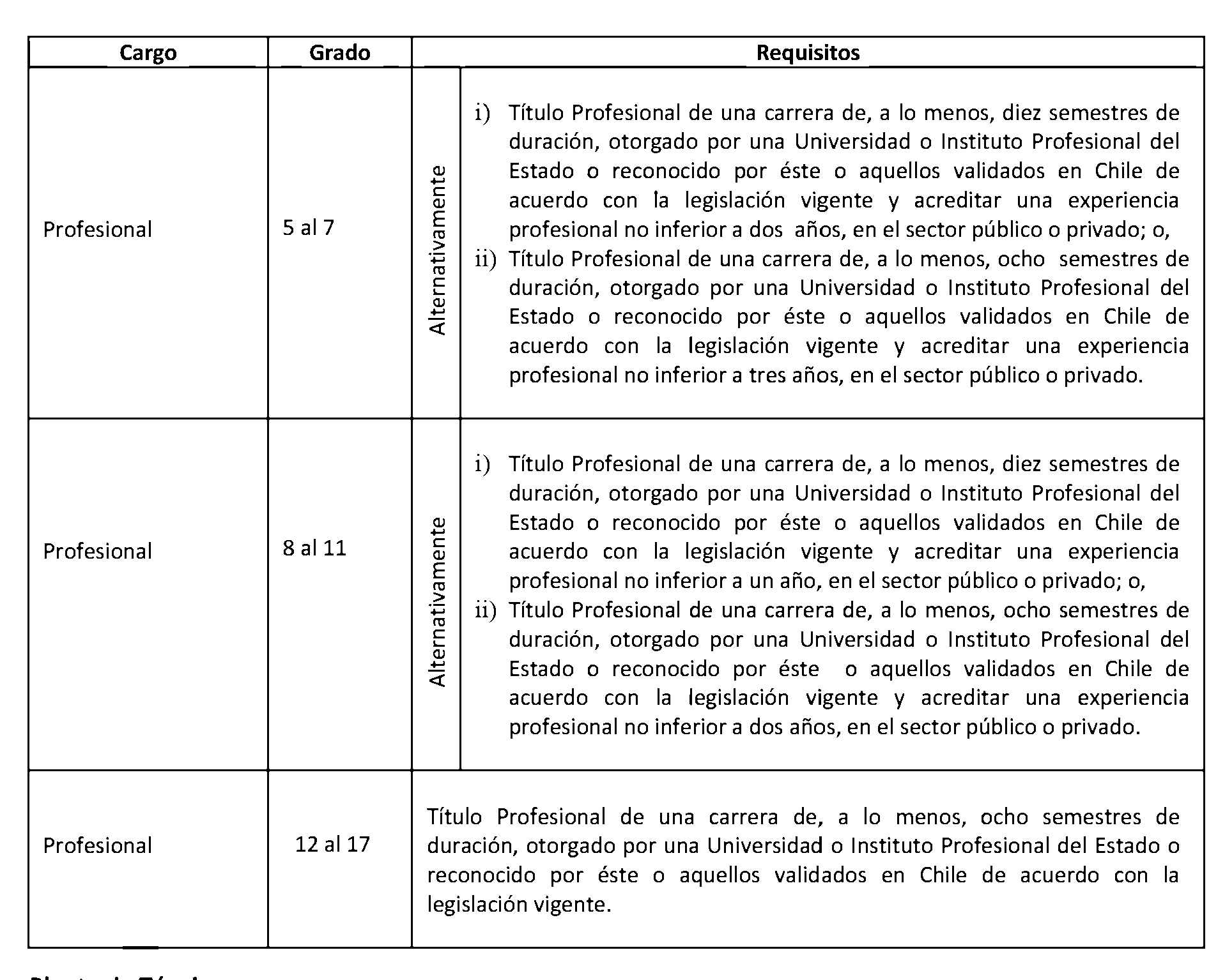 D.O. 12.12.2013 Artículo 2°. Establécense los siguientes requisitos para el ingreso y promoción en las plantas y cargos que se indican a continuación: