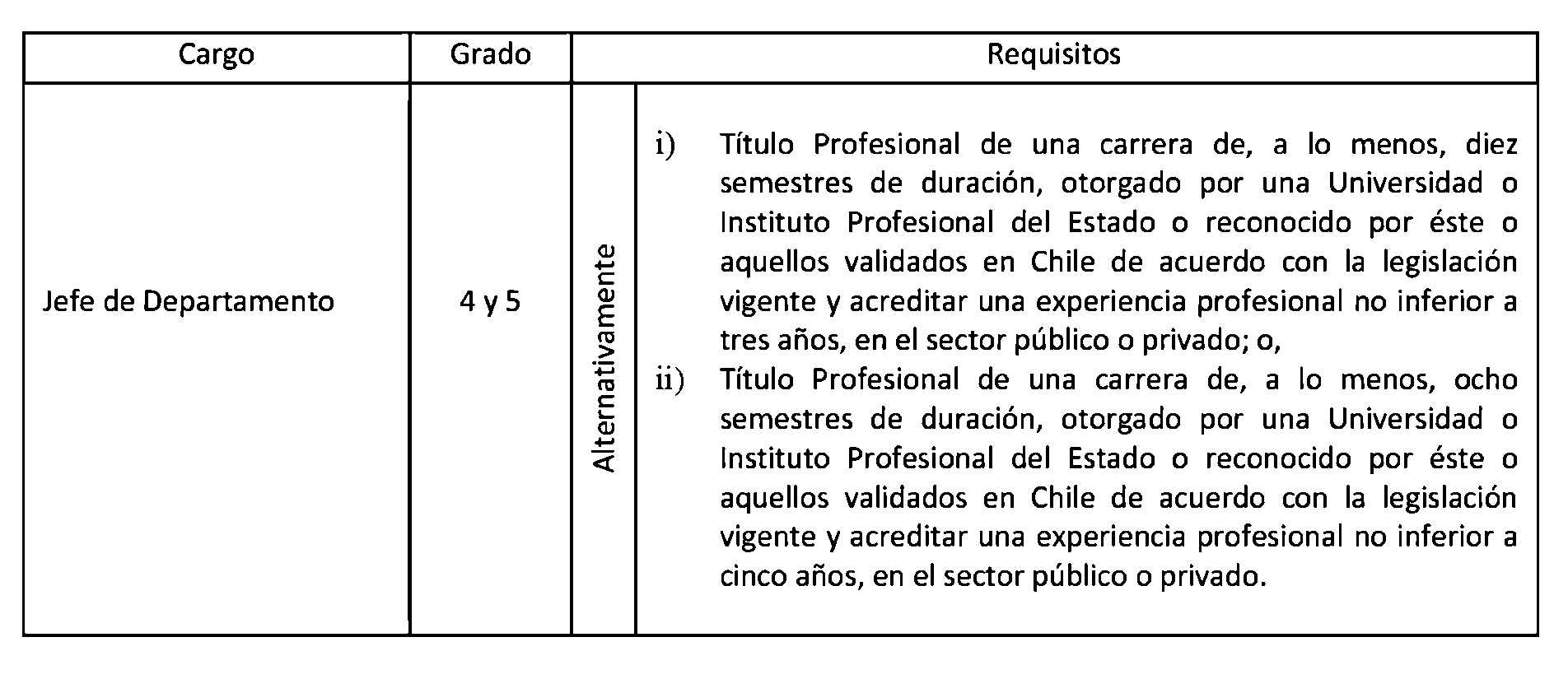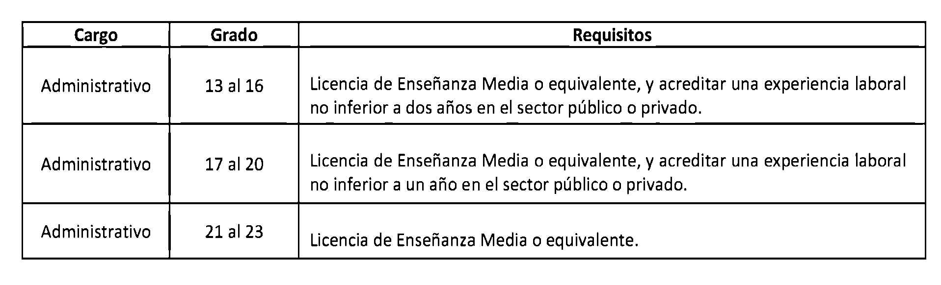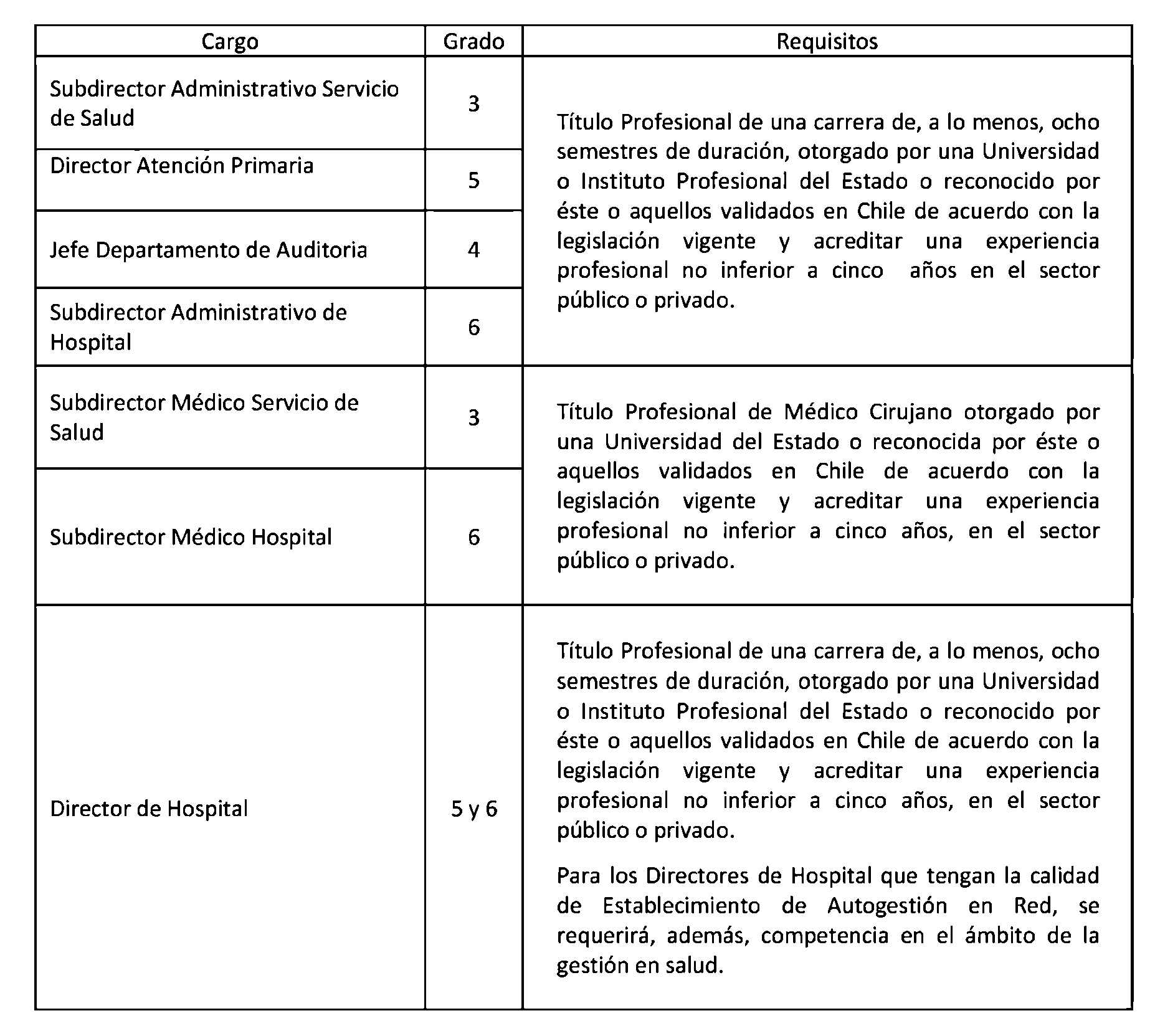 D.O. 12.12.2013 Artículo 2°. Establécense los siguientes requisitos para el ingreso y promoción en las plantas y cargos que se indican a continuación: