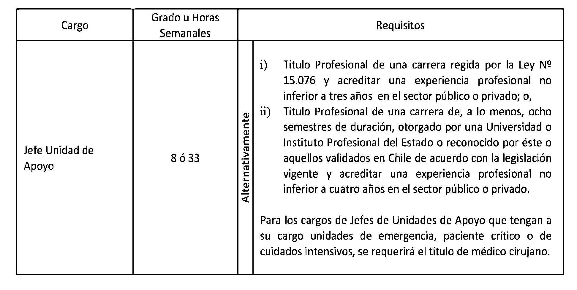 Los cargos de Jefes de Unidades de Apoyo señalados en el punto 1.4 de este artículo, corresponden a los cargos de Jefes de Unidades de Apoyo Diagnóstico y de Jefes de Unidades de Apoyo Clínico Terapéutico a que se refiere el artículo 9° de la Ley N° 20.261.