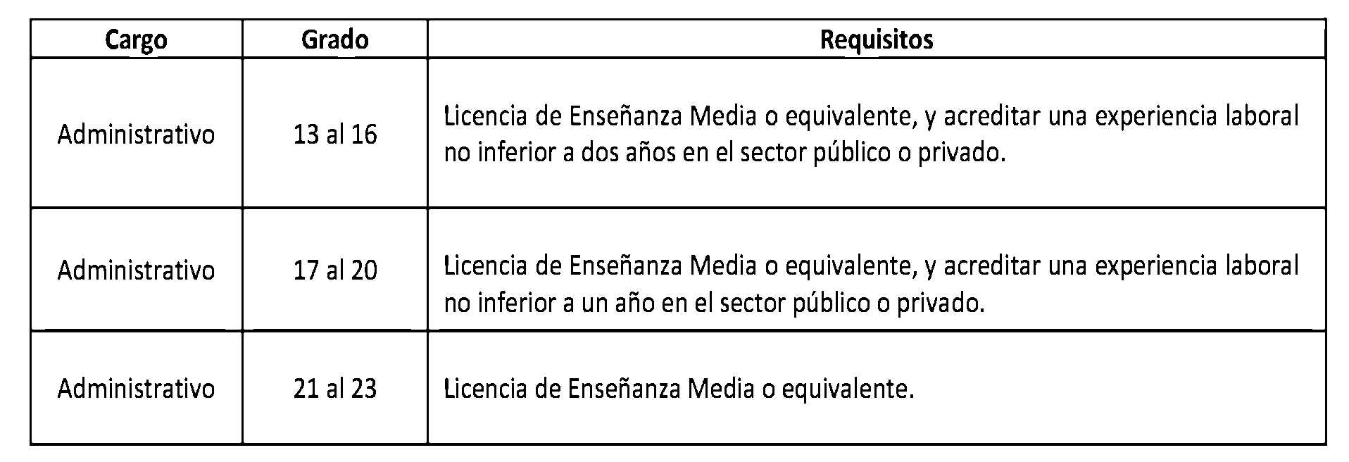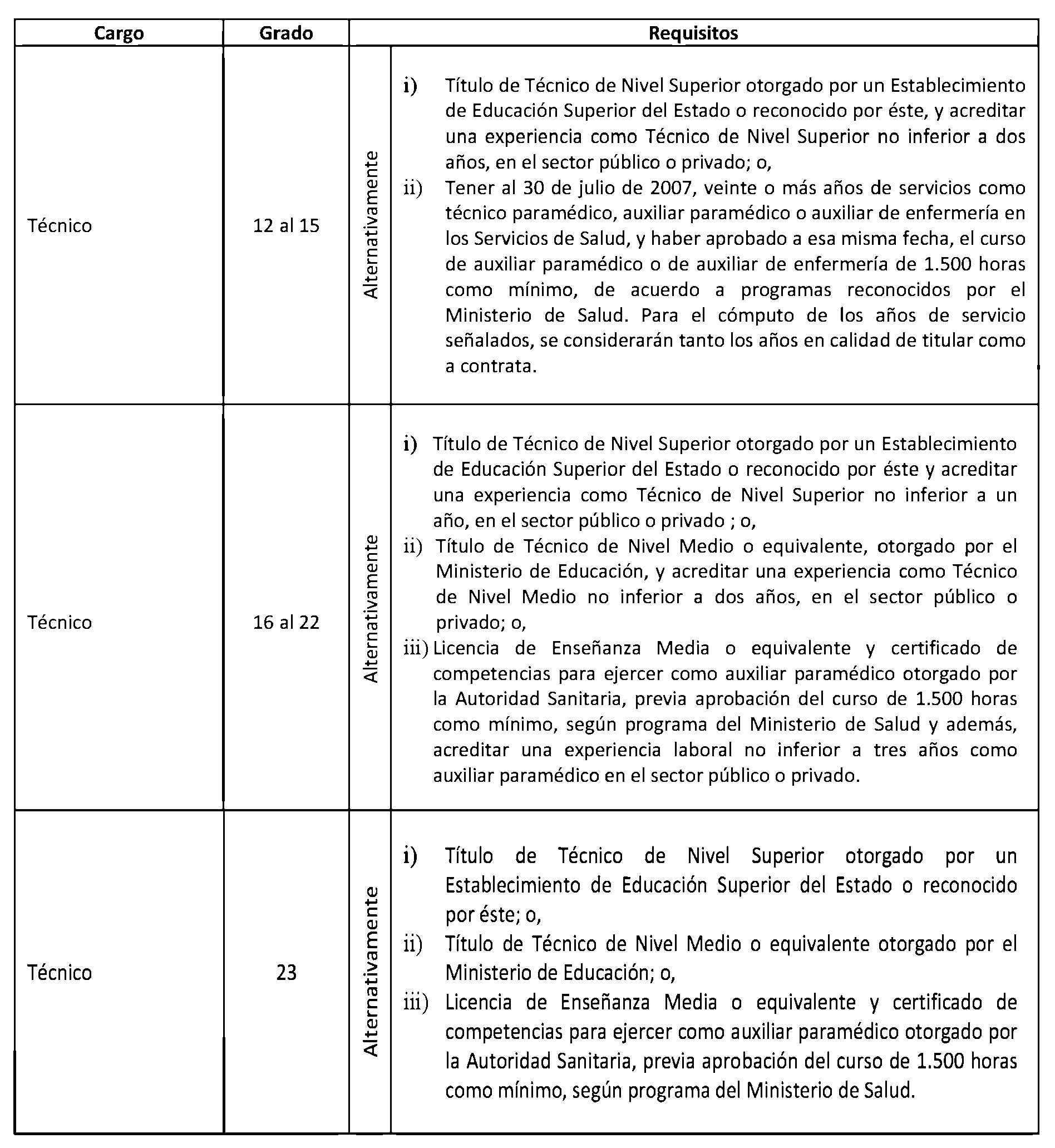 Artículo 2°. Establécense los siguientes requisitos para el ingreso y promoción en las plantas y cargos que se indican a continuación: