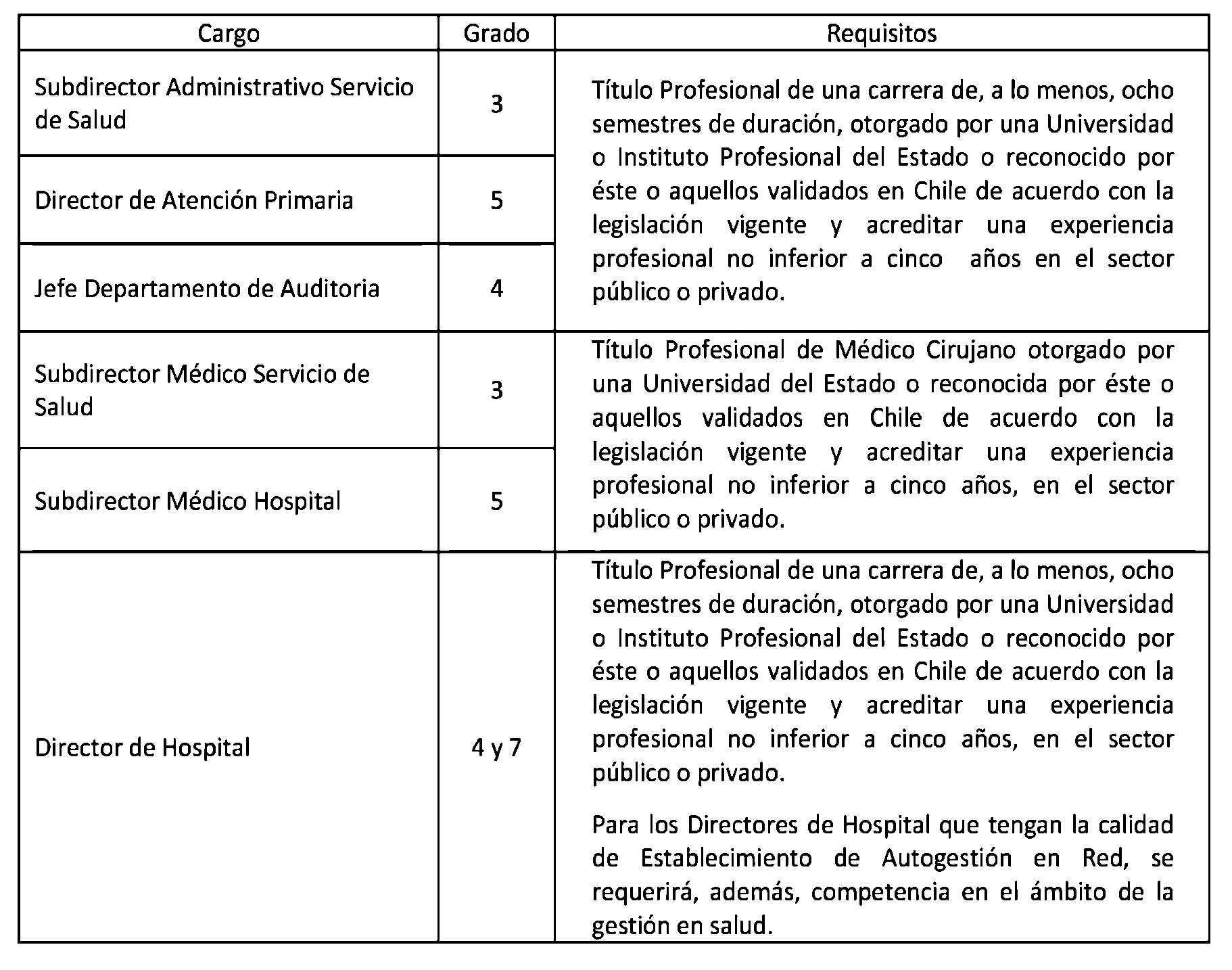 Enseguida, es necesario consignar que en los decretos con fuerza de ley Nºs. 9; 23; 24 y 29, relativos a los Servicios de Salud Arica, Arauco, Araucanía Norte y Chiloé, respectivamente, no se considera en sus estamentos directivos el grado 17. Sobre el particular, cabe manifestar que si bien de acuerdo con lo dispuesto en el artículo segundo transitorio, inciso primero, de la ley Nº 20.209, se exige que los grados iniciales y superiores de la Planta de Directivos, sean 17 y 2, no se facultó, sin embargo, al Presidente de la República para crear cargos en dicho estamento, lo que impediría cumplir, en lo pertinente, con el referido mandato legal. Ello, atendido que actualmente los indicados Servicios no contemplan el grado 17 en sus estamentos directivos.