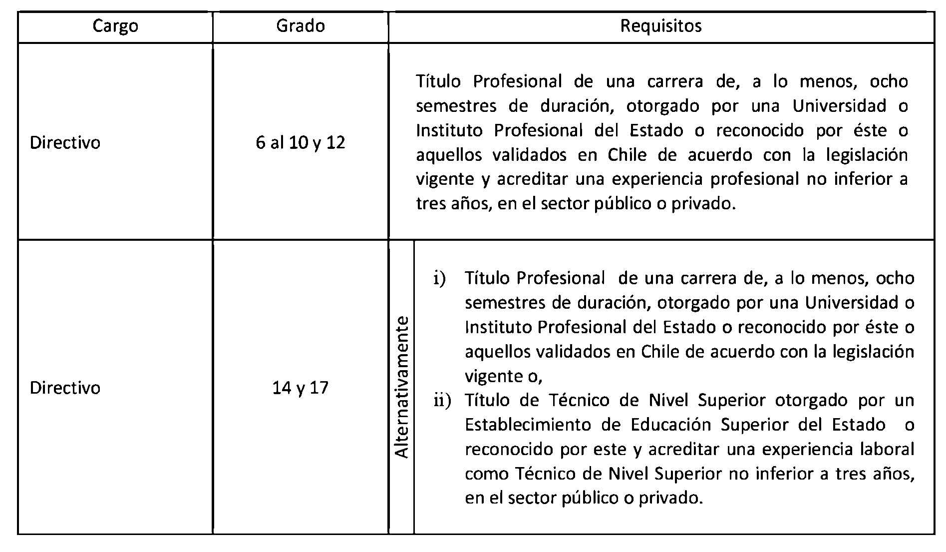 1.2 Directivos de Carrera sujetos al artículo 8° del Estatuto Administrativo.