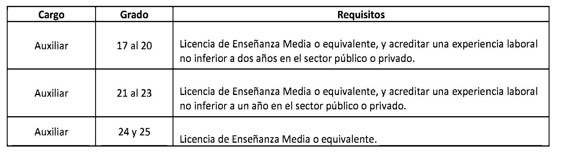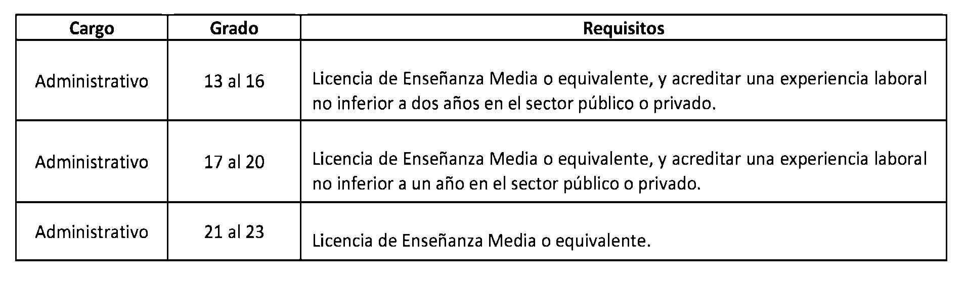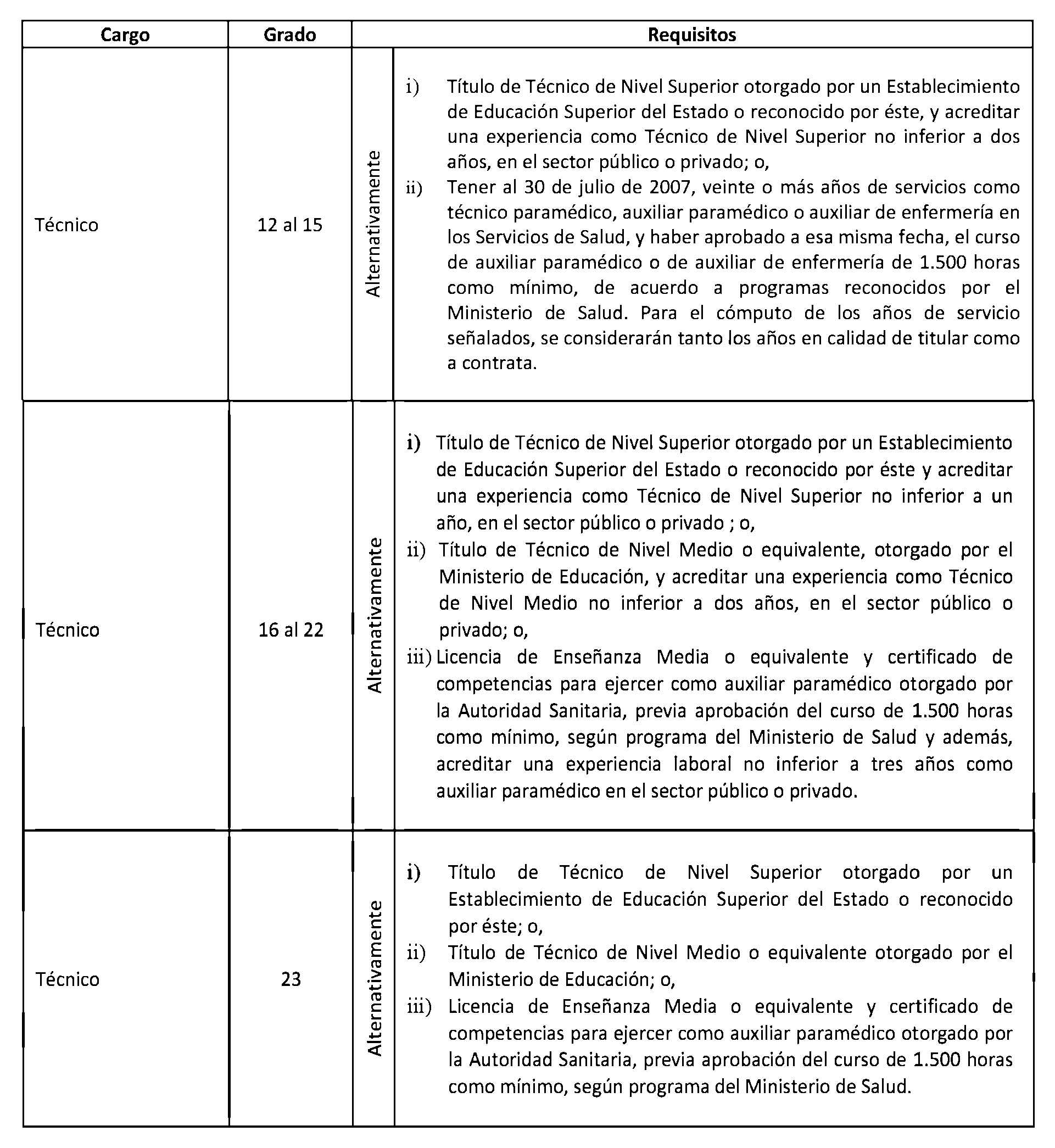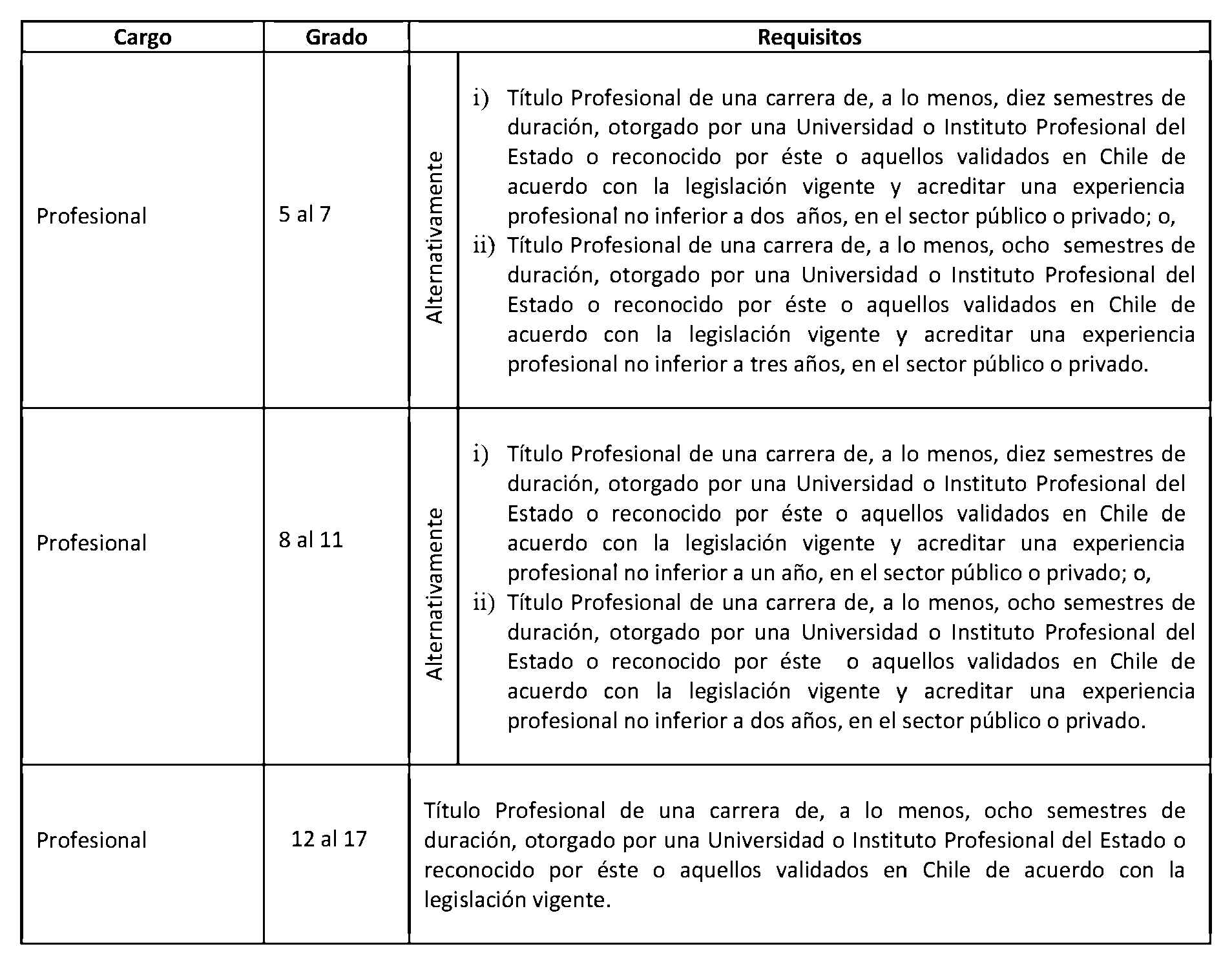 Artículo 2° Establécense los siguientes requisitos para el ingreso y promoción en las plantas y cargos que se indican a continuación:
