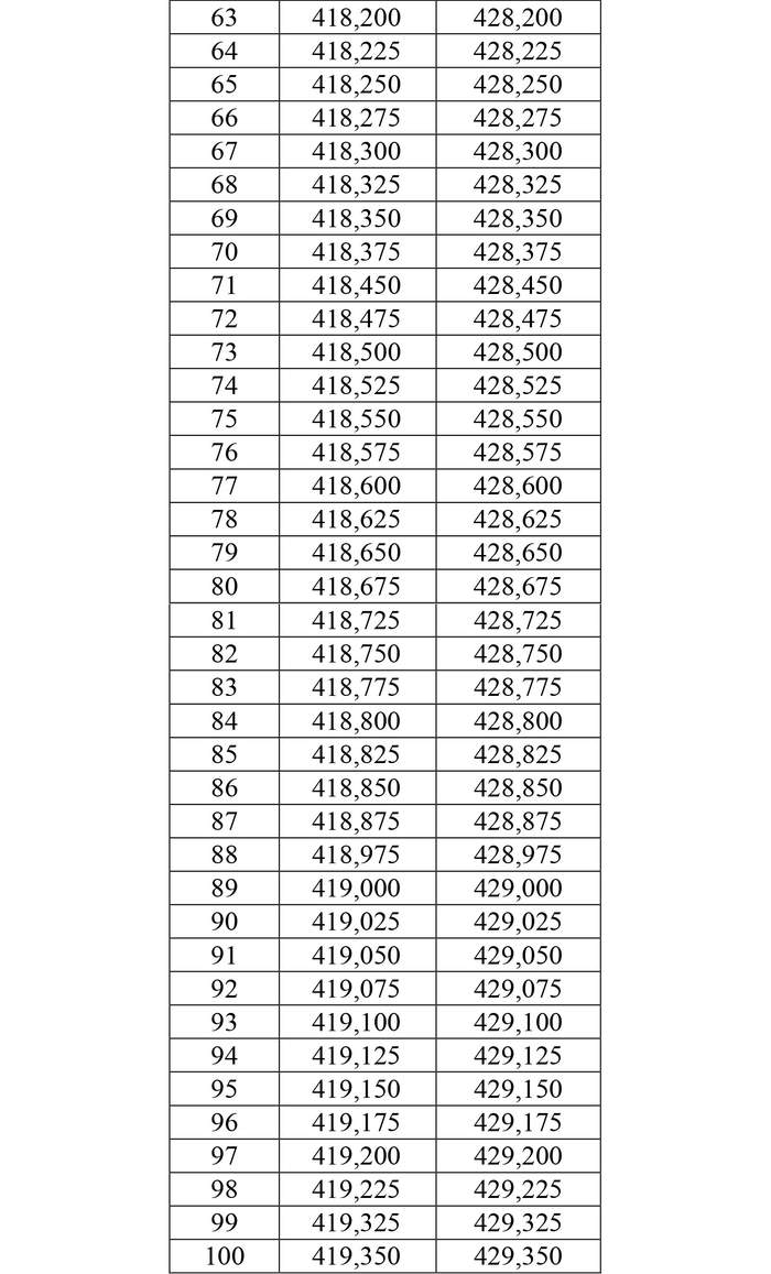 Artículo 3° La canalización en las bandas destinadas al servicio será a 25 kHz según se indica a continuación. Las frecuencias están asociadas a la estación base de la red, y corresponden a la frecuencia central del canal cuando ocupa todo el ancho de banda, sin embargo, el permisionario podrá implementar canales con Resolución 1709 EXENTA,