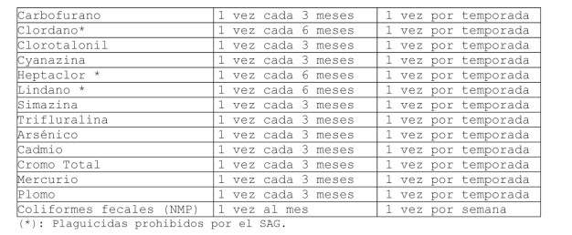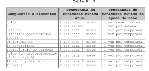 Artículo 6º.- Cuando la Autoridad Sanitaria respectiva no disponga de antecedentes suficientes para establecer la frecuencias mínimas de monitoreo, estas serán las que se indican en la tabla Nº3.