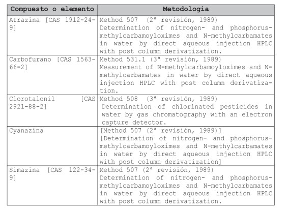2. Metodologías descritas en: Methods for the Determination of Organics Compounds in Drinking Water. US Environmental Protection Agency EPA/600/4-88/039.