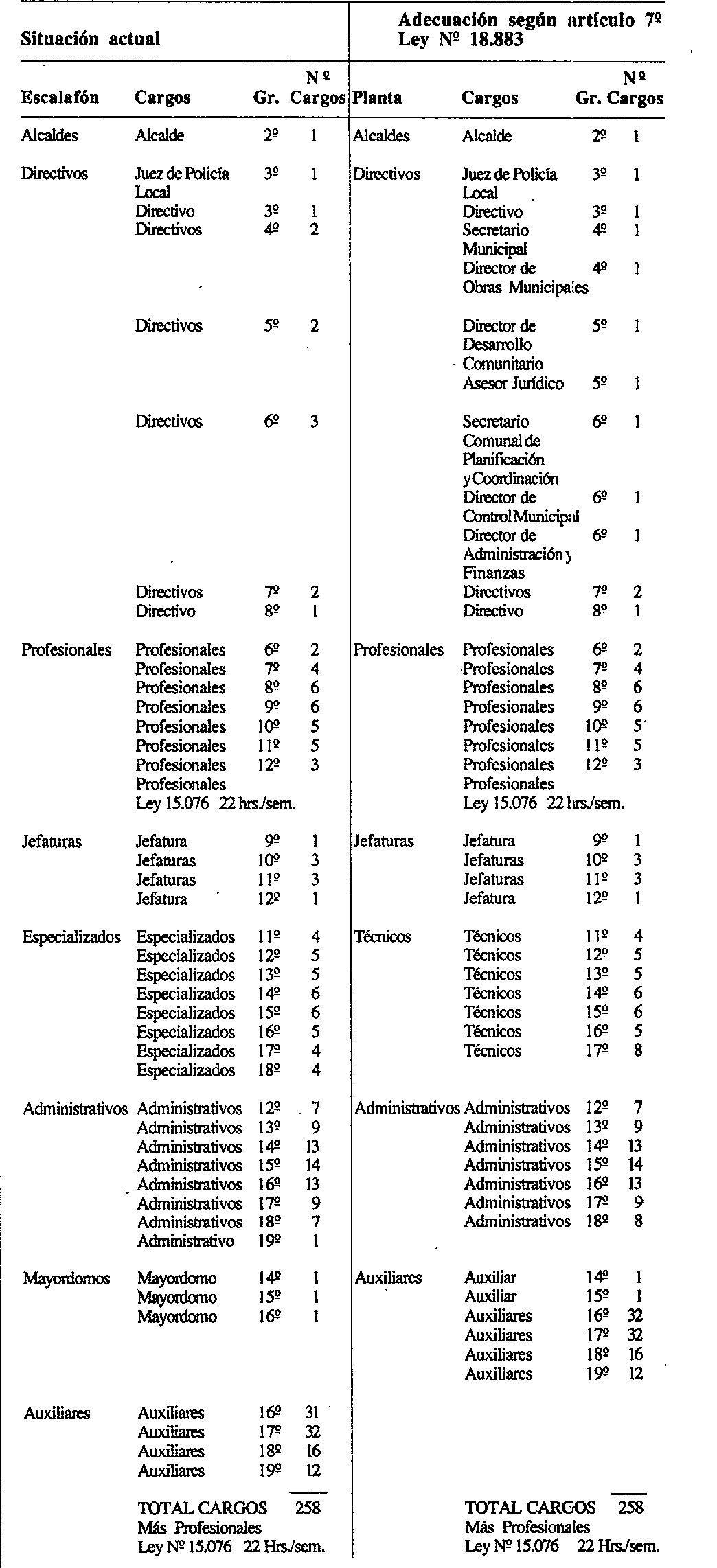 Artículo 1°.- Adécuanse la planta y escalafones del personal de la Municipalidad de San Joaquín a lo dispuesto en el artículo 7° de la ley N° 18.883, en la forma que se señala: