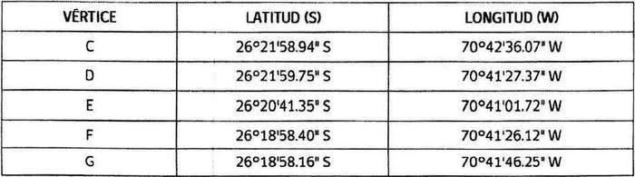 L.S. - 70º 28' 31" L.W.)y Punta Taltal (25º23' 56" L.S. - 70º 30' 48" L.W.)