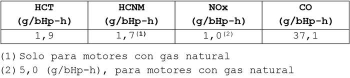 a.1) Emisiones provenientes del sistema de escape, en gramos/caballos de fuerza al freno-hora (g/bHp-h):
