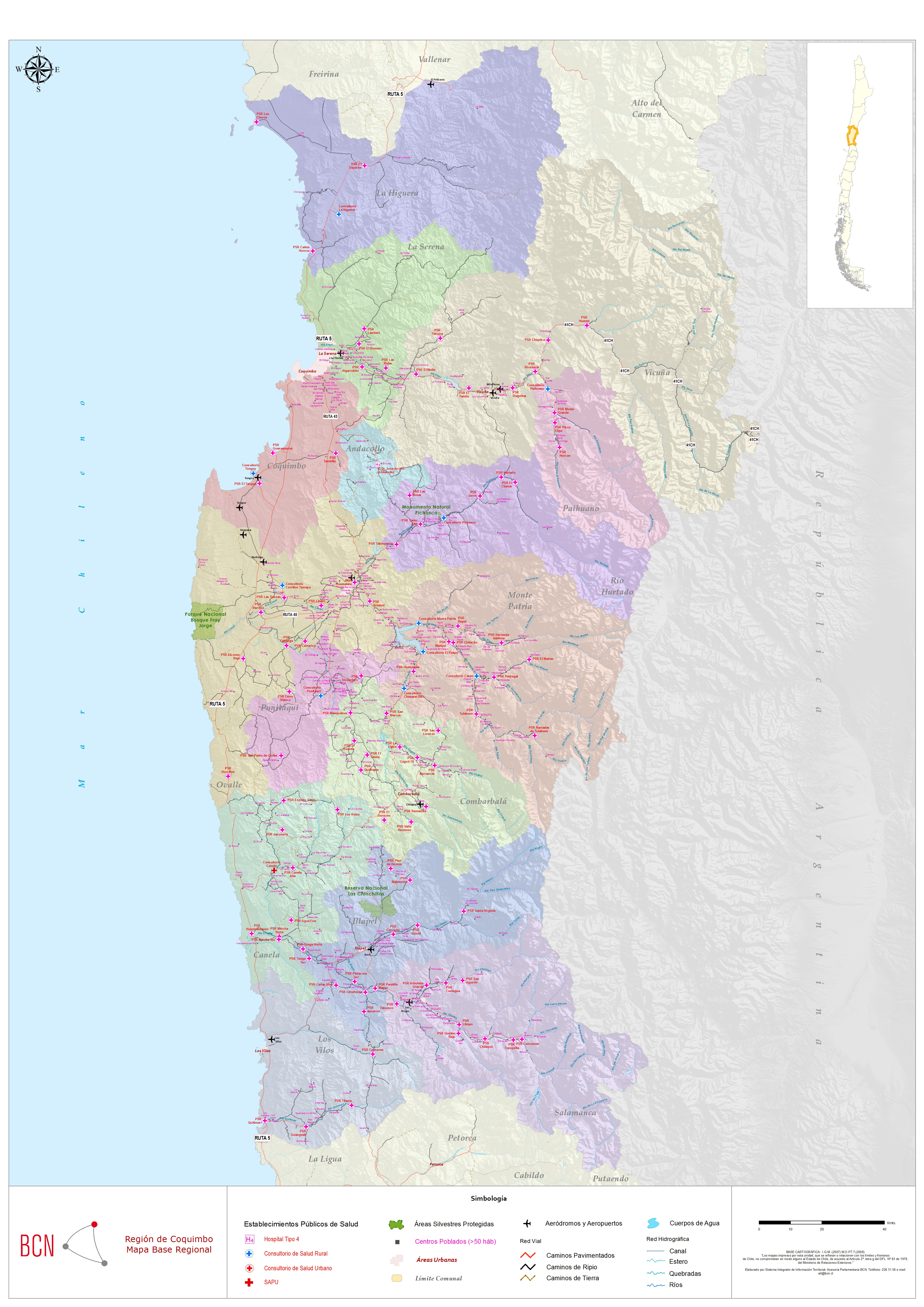 La región de Coquimbo (IV) se localiza aproximadamente entre los 29° 20´ y los 32° 15´ de latitud sur. Tiene una superficie de 40.579,90 kilómetros cuadrados, equivalentes al 5,37% del territorio nacional. Según el Censo 2024 la población alcanza a 832.864 habitantes y una densidad de 20,52 habitantes por kilómetro cuadrado. Cuenta con tres provincias y 15 comunas, cuya capital regional es la ciudad de La Serena.